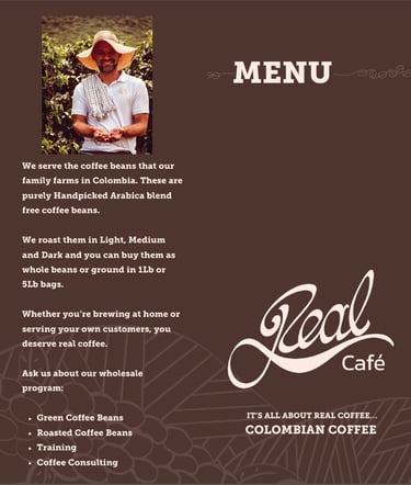 All Rights Reserved. Use of the Café Real LLC. website constitutes acceptance of our Terms and Conditions and Privacy Policy.
